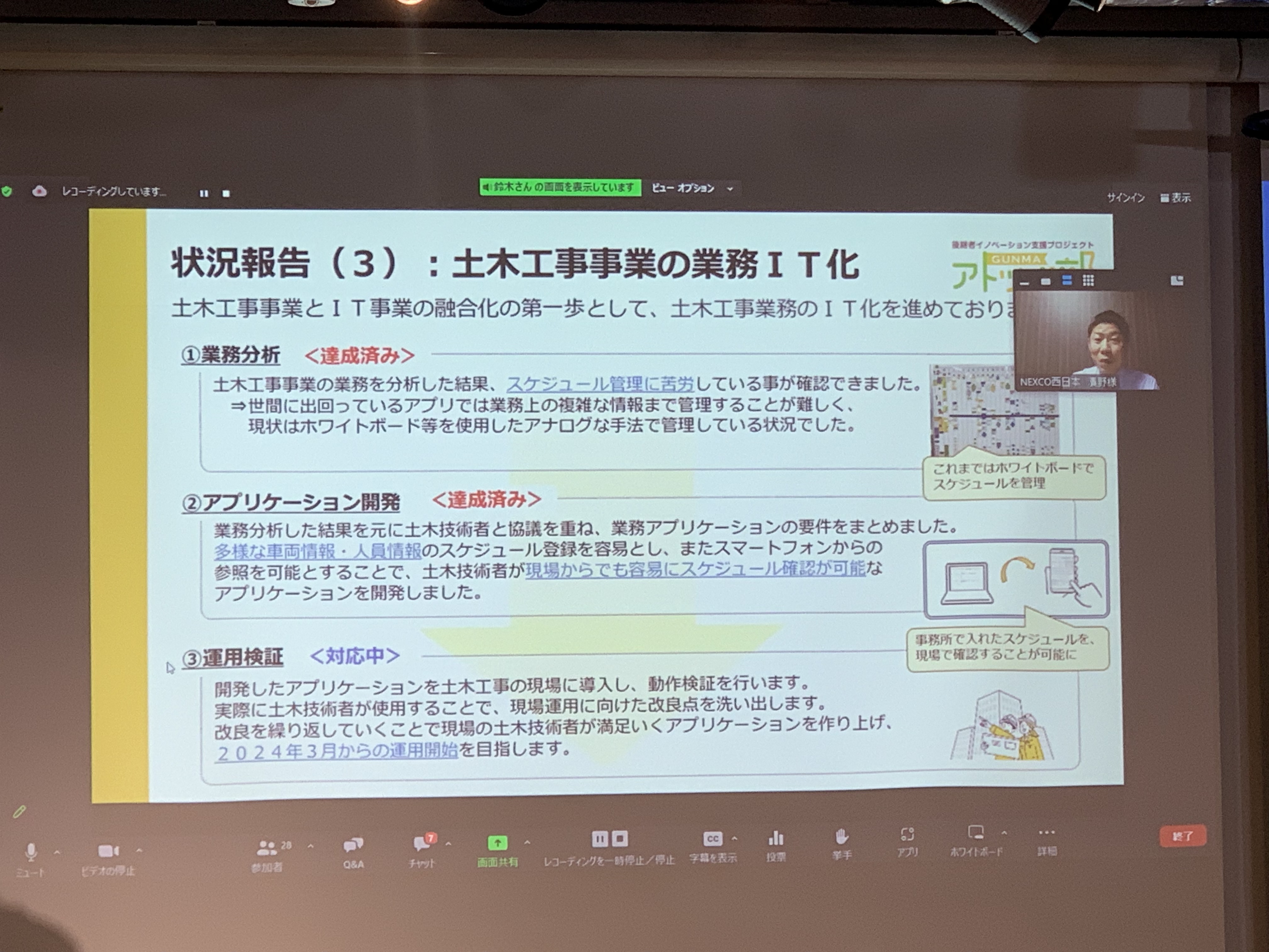 2023年12月6日、群馬県庁の官民共創スペース「ネツゲン」にて、「GUNMAアトツギ部」の中間デモデイが開催されました。