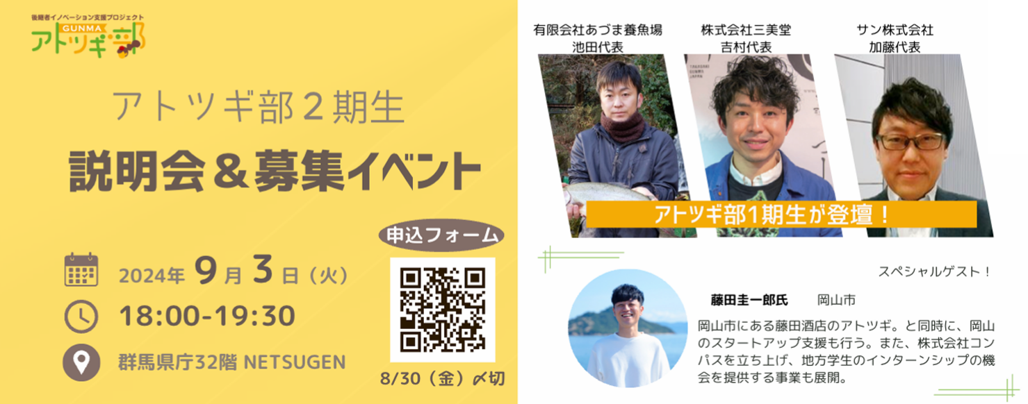 2024年9月3日、群馬県庁にて、「GUNMAアトツギ部」の第2期生募集イベントが開催されました。